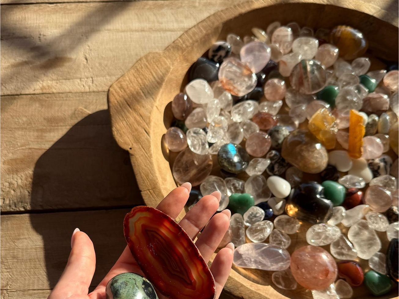 ‘Een steen kiest jou uit’, is een waar gezegde. Het is net als kleding, de ene keer heb je zin aan wit of vrolijke kleuren en de andere keer kies je voor donker en effen. Kleding zoek je uit bij je gemoedstoestand of bij de situatie, en zo trekt een steen jouw aandacht precies op een vlak waar jij wel wat ondersteuning of een levenswijsheid kunt gebruiken.